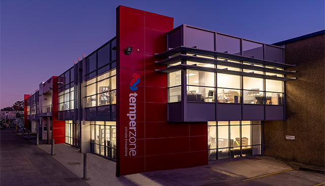 Temperzone require architectural photography of their Sydney premises for a corporat profile brochure. Because of the orientation of the buildin we photographed in both the morning and evening golden hours to show of the features of the building.